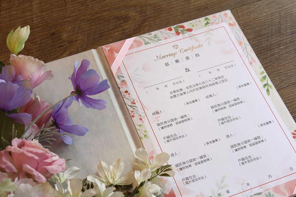 目前僅有公版出售, 無客製服務喔~~ 一本書夾內有兩張證書紙, 通常戶政事務所會收回一張存底或是拷貝